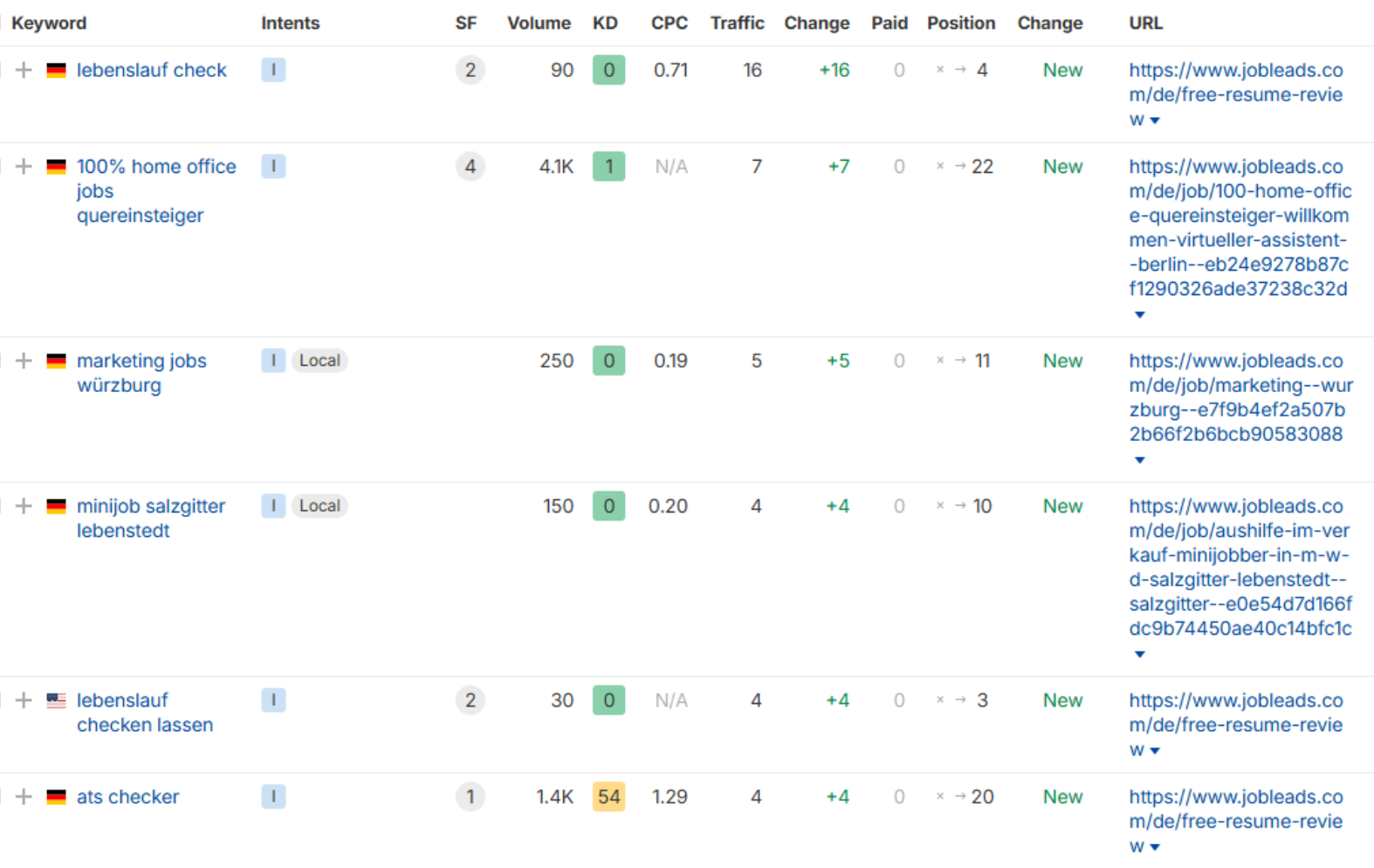 In fact, since activity began, we’ve witnessed a +21% (719 vs 594) increase in job-specific rankings throughout the search results in the German market.