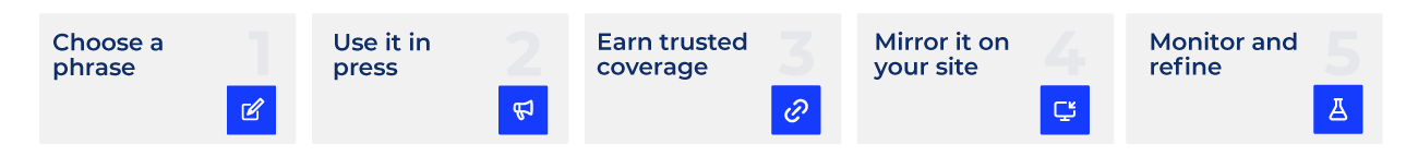 LLMs don’t just evaluate a single webpage; they interpret the broader context surrounding a brand across the web. AiPR focuses on earning coverage optimised for LLMs and from trusted publications so AI models repeatedly encounter your brand alongside relevant topics, entities, and expertise areas.