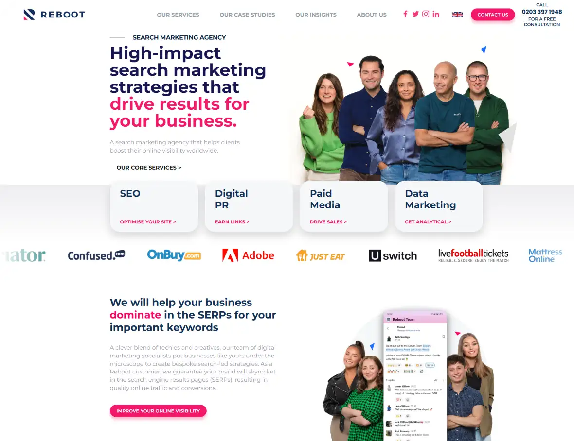Reboot Online is a UK-based search marketing agency specialising in high-converting paid media campaigns. SEO forms the bedrock of its services, which also include digital PR and data marketing. The agency works with clients in eCommerce, finance, travel, B2B, iGaming, and many other sectors to improve their visibility and performance.